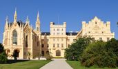 Das staatliche Schloss Lednice (Eisgrub) ist seit 1945 im Besitz des Staates und wird vom Kulturministerium der Tschechischen Republik durch das Nationale Denkmalinstitut in Prag - Gebietsfachstelle in Krom??íž (Kremsier) - verwaltet. Das Schloss gehört zu den meistbesuchten Sehenswürdigkeiten in unserem Land. Der neogotische Umbau im 19. Jahrhundert machte das Schloss zum romantischen Sitz, der von einem der größten europäischen Parks (fast 200 Hektar) umgeben ist. Im Park findet der Besucher ein Palmenhaus, einen venezianischen Brunnen, ein römisches Aquädukt, einen chinesischen Pavillon, ein Minarett und eine künstliche Ruine Jan?v hrad (Hansenburg). Dank der einzigartigen Verbindung von Baudenkmälern mit der umliegenden, vom Menschen geformten Natur wurde das gesamte Areal von Lednice - Valtice (Feldsberg) im Jahre 1996 in die Liste des UNESCO-Welterbes aufgenommen.