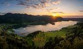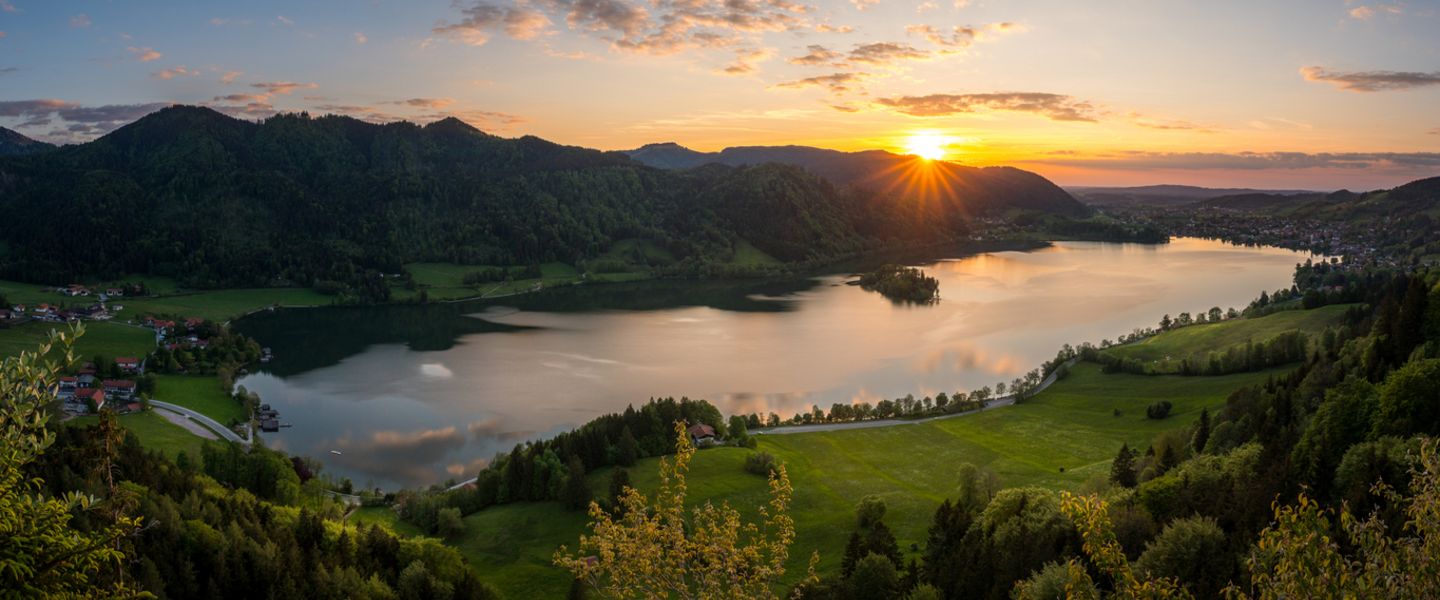 Anreise über den Chiemsee nach Schliersee. Besuch im Bauernhof- und Wintersportmuseum. Besuch der von Baptist Zimmermann stuckierten und ausgemalten Pfarrkirche, Besuch des Grabes vom „Wildschütz Jennerwein“. Möglich ist auch ein Spaziergang am See oder der Besuch einer Enzianbrennerei. Auffahrt auf die Schliersbergalm. Aufenthalt, Gelegenheit zu Spaziergängen oder Einkehr. Heimfahrt über Burghausen nach Passau zurück. Rückkunft gegen 20.00 Uhr.