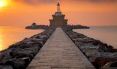 TORCELLO: Torcello war ein bedeutendes Handelszentrum (gegründet im 7. Jh) und Bischofssitz. Mitten in der heutigen Obst- und Gemüseinsel blieben nur zwei einzigartige Kirchenbauten erhalten: Santa Maria Assunta, die Kathedrale, wurde 639 gegründet und 1008 in ihrer heutigen Gestalt geweiht. Sie ist der älteste erhaltene Bau der Lagune. Vor der Fassade wurden Reste des Baptisteriums aus dem 7. Jh. freigelegt. Im Innenraum überzeugt die Weiträumigkeit - offener Dachstuhl, Säulen trennen die Schiffe, der Marmorfußboden fasst zusammen. Größter Kirchenschatz sind der Lettner mit vier Bildtafeln im byzantinischen Stil der Entstehungszeit sowie die Mosaiken. Sie gehen im Presbyterium bis ins 7. Jh zurück: aus dem 13. Jh stammt jedoch die Gottesmutter der Hauptapsis. Das dramatische Jüngste Gericht an der Westwand entstand um 1190. Konzeption und Ausführung in sechs Zonen, vom Weltenherrscher bis zu den Verdammten, sind überwältigend. Die Taufkirche Santa Fosca neben der Basilika, ein Rundbau (11./12.Jh), beweist mit ihren Säulenvorhallen byzantinische Eleganz. Im Inneren sind Holzteile der Kuppelkonstruktion bemerkenswert sowie die verlängerte Apsis.