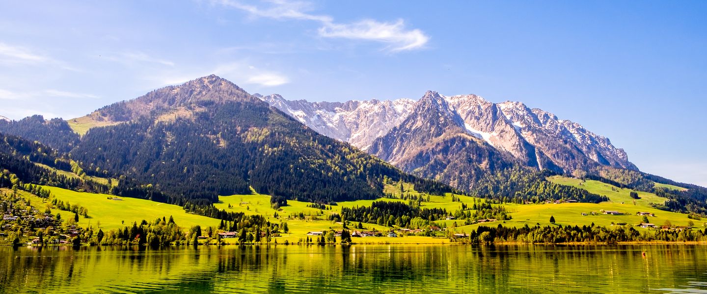 Die Etappe 13 des Mozartradweges führt ab dem Walchsee vorbei an Kössen und Schwendt nach Sankt Johann in Tirol. Nach einer Rast geht es über Waidring weiter nach Lofer.