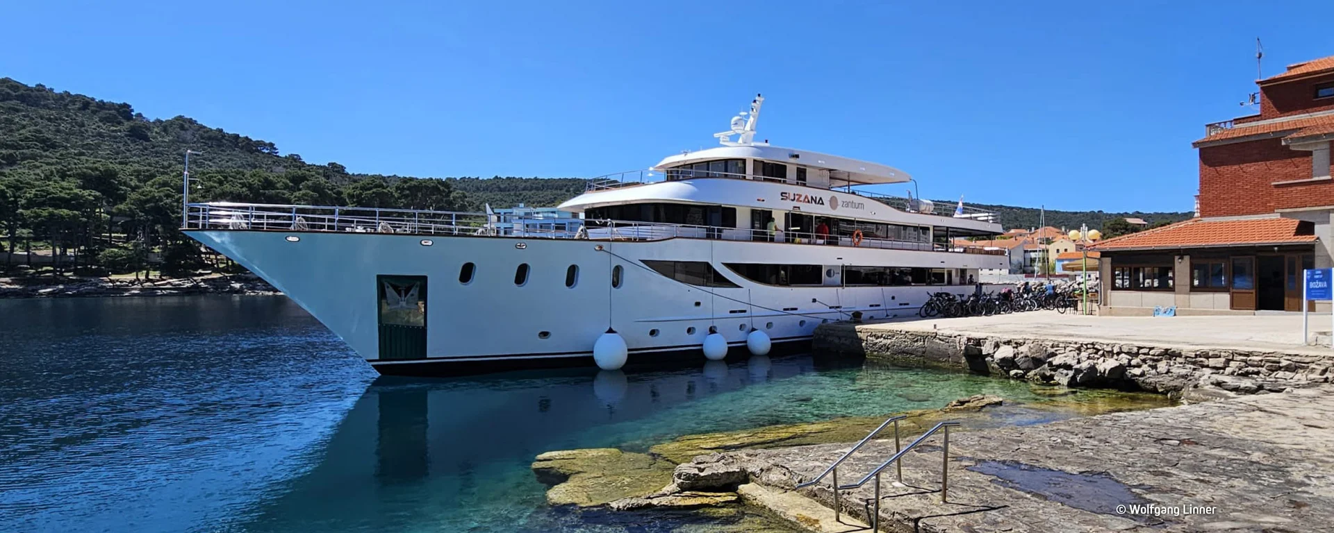 Das Schiff "Suzana" (Baujahr 2021) bietet modernsten Komfort und Ausstattung auf 48 Metern Länge. Die Sonnenterrasse lädt mit Liegestühlen, Whirlpool, Outdoor-Lounge und einer Bar zum Entspannen ein. In den Kabinen genießen Sie Klimaanlage, ein eigenes Bad mit Toilettenartikeln, Haartrockner, Safe und TV. Dieses stilvolle Schiff vereint moderne Technologie mit höchstem Komfort, um Ihre Reise so angenehm wie möglich zu gestalten.