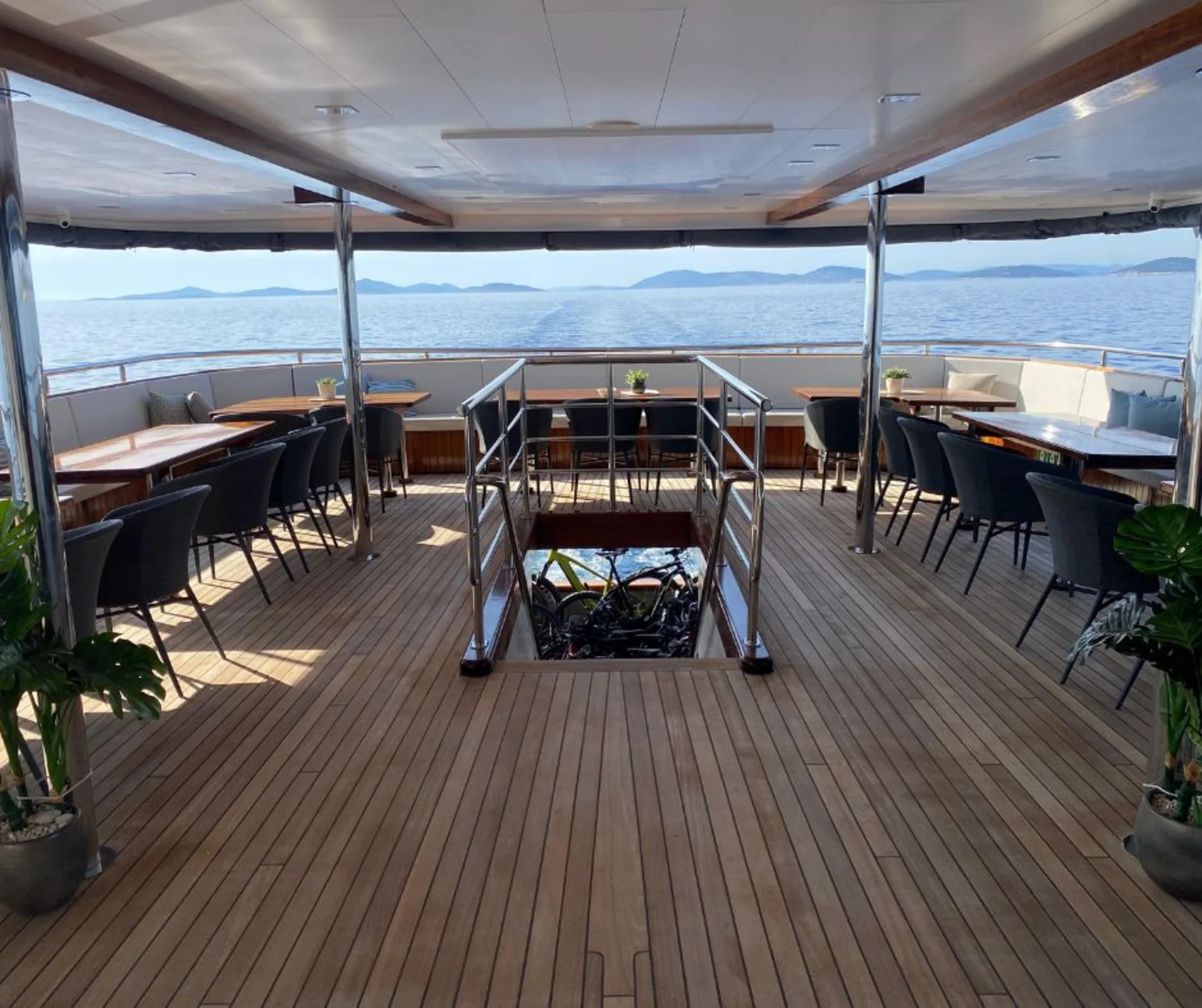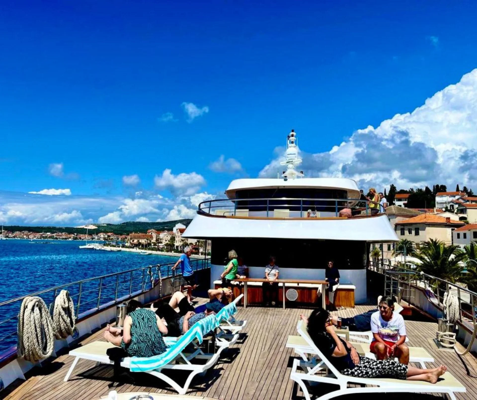 Eine exklusive Fürst-Kreuzfahrt zu den schönsten Inseln Dalmatiens, verbunden mit interessanten E-Bike Touren erwarten Sie bei dieser exklusiven Bike and Ship Reise. Das Schiff „Suzana“ – ist ein Kreuzfahrtschiff, Baujahr 2021, das mit modernster Ausstattung ausgestattet ist. Es hat eine Länge von 48m und verfügt über eine Sonnenterrasse.