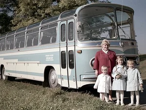 Kurz danach war die neueste Mercedes-Busgeneration in modisch hellblauer Farbe der ganze Stolz der Familie.